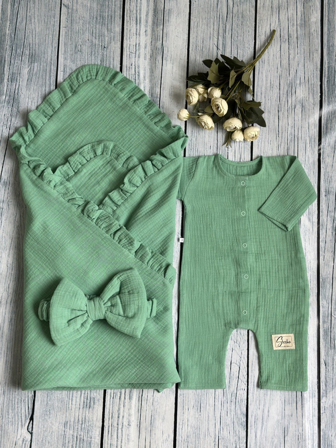 Теги: Купить детские конверты, комбинезон оптом, детские конверты на выписку оптом. 335-ОЛ. Комплект из детского комбинезона, р 56 и конверта муслин, хлопок 100% 90/90 см, олива цена,отзывы официальный сайт "Стеша Миасс"